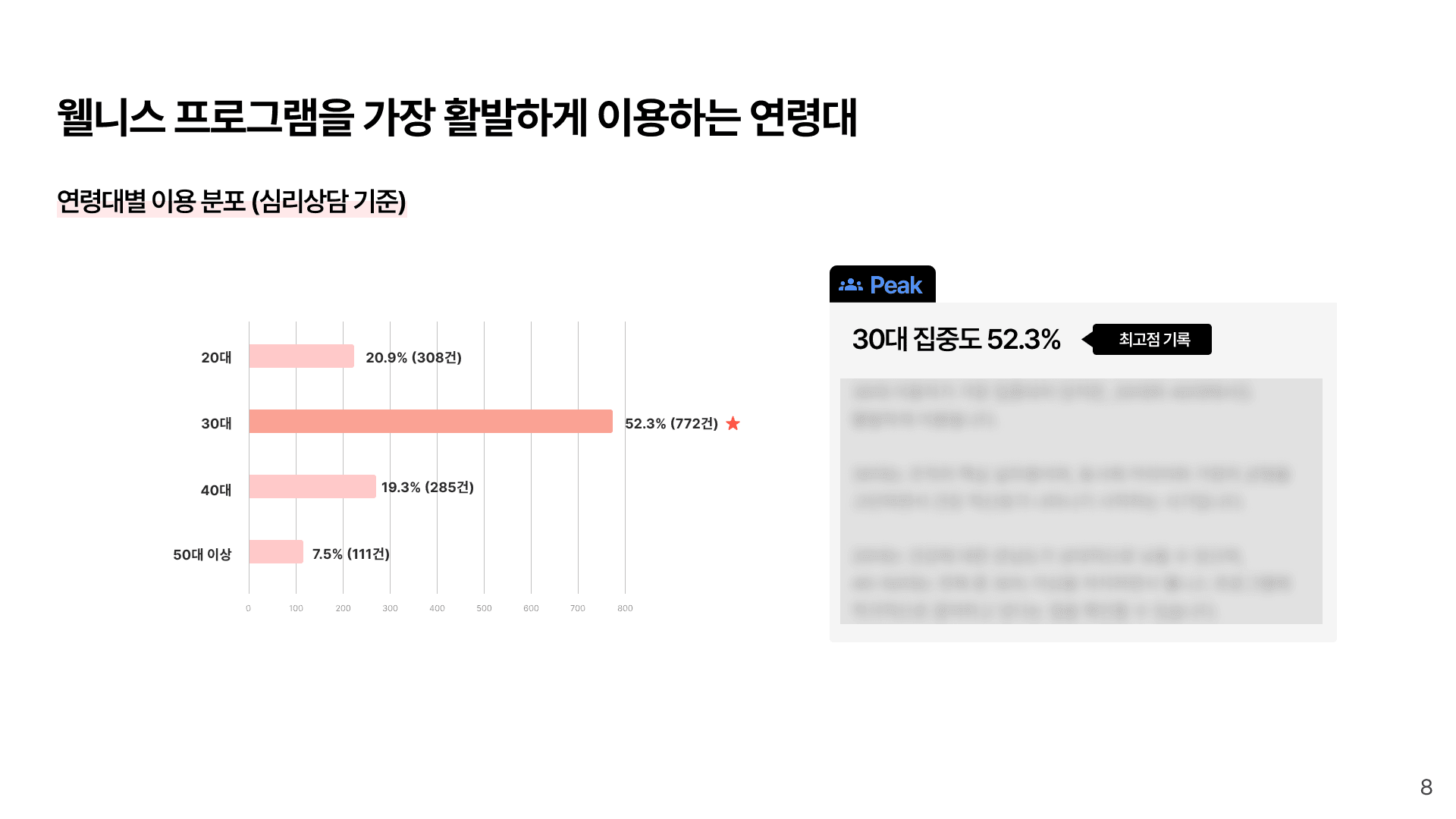 조직의 허리인 30대(이용 비중 52.3%)가 웰니스에 가장 활발하게 참여합니다. 연령대별 이용 흐름으로 봤을 때 앞으로 기업 웰니스를 어떤 방향으로 설계해 나가야 될까요?