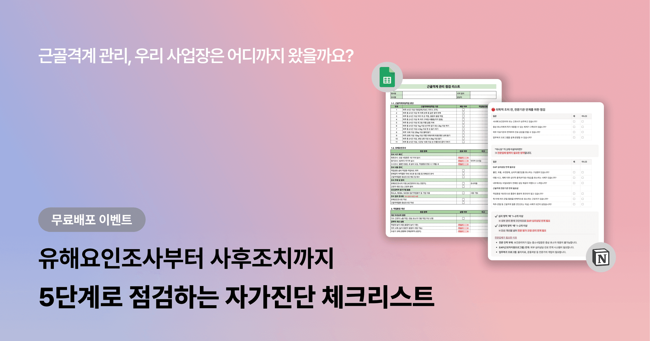 근골격계 관리는 단순한 법적 의무 이행을 넘어 근로자의 건강권 보호와 기업의 생산성 향상, 산재 예방과 직결된 핵심 과제입니다. 이번 체크리스트는 근골격계 관리의 5단계 프로세스를 누구나 바로 현장에 적용할 수 있도록, 법령 근거·실행 가이드·자가 진단까지 담아 정리했습니다.